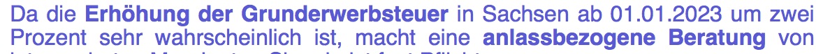 In dieser Email stand nun folgendes: ?Da die Erhöhung der Grunderwerbsteuer in Sachsen ab 01.01.2023 um zwei Prozent sehr wahrscheinlich ist,??