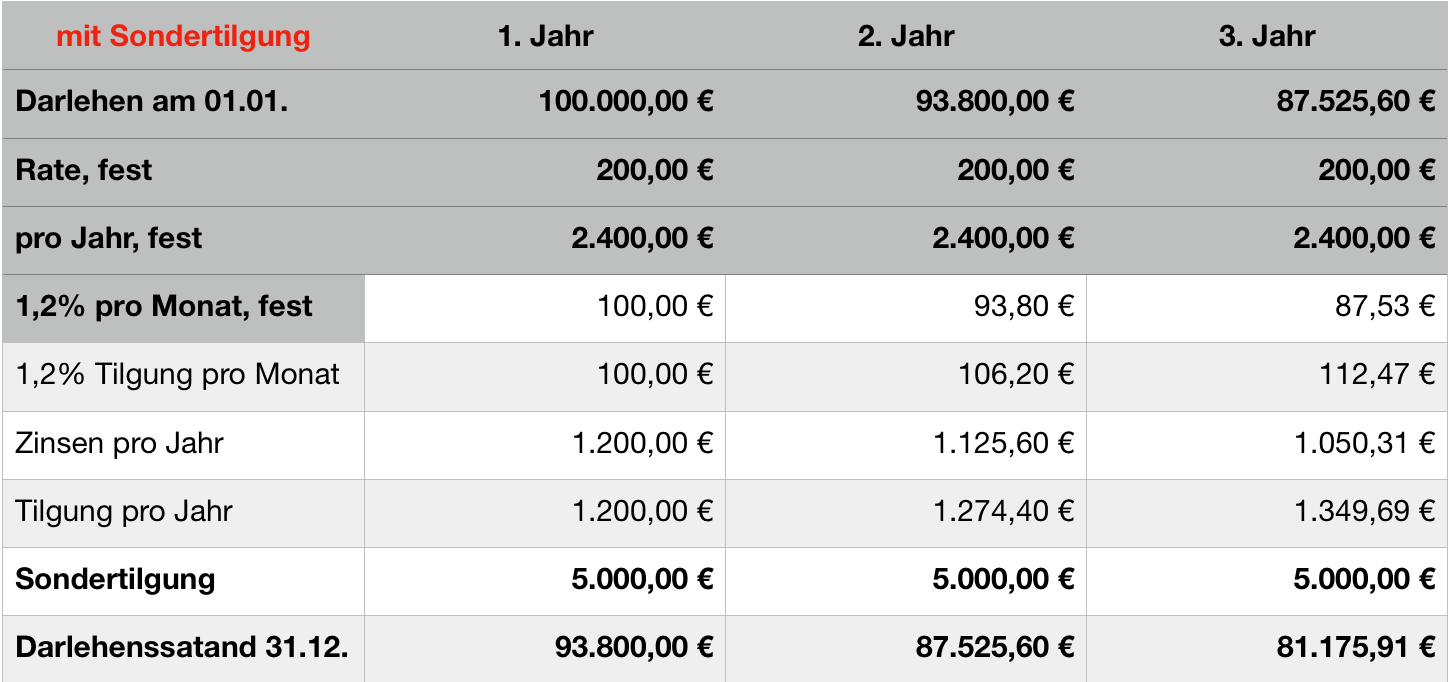 Wenn Du schnell entschulden willst, macht eine Sondertilgung Sinn, aber nur wenn Du sie auch wirklich NUTZT.