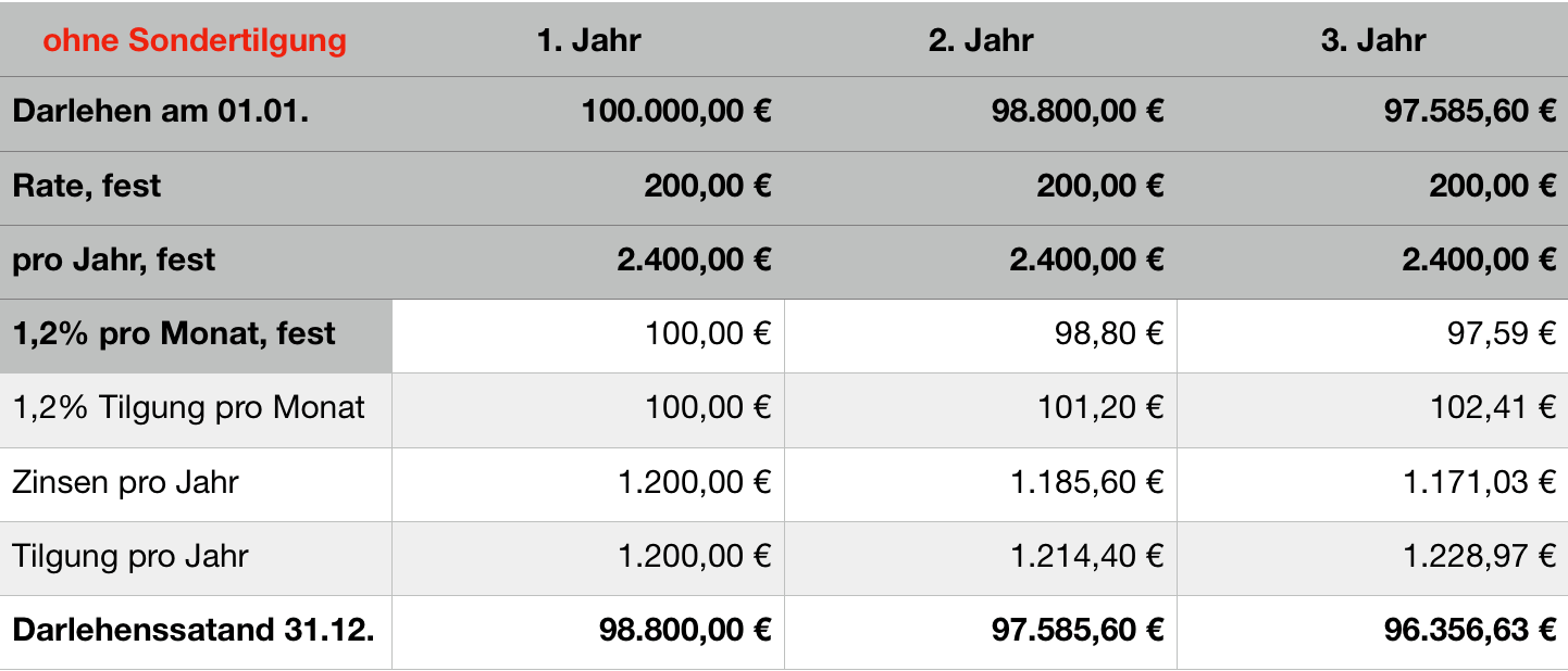 Wenn Du ein jährliches Sondertilgungsrecht in Deiner Finanzierung hast und dies auch wirklich nutzt, hat dies einen zweifachen Effekt auf Deinem Weg zur Entschuldung.